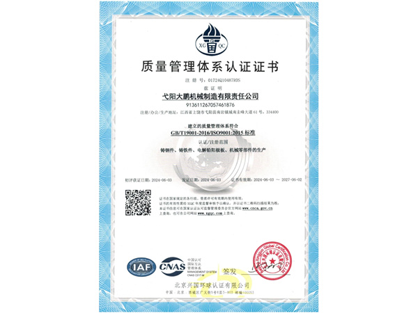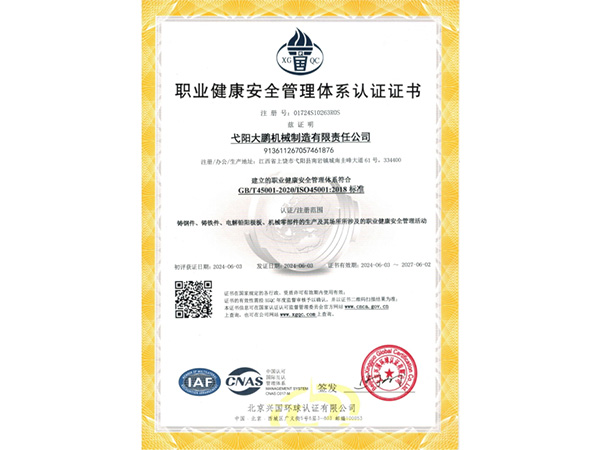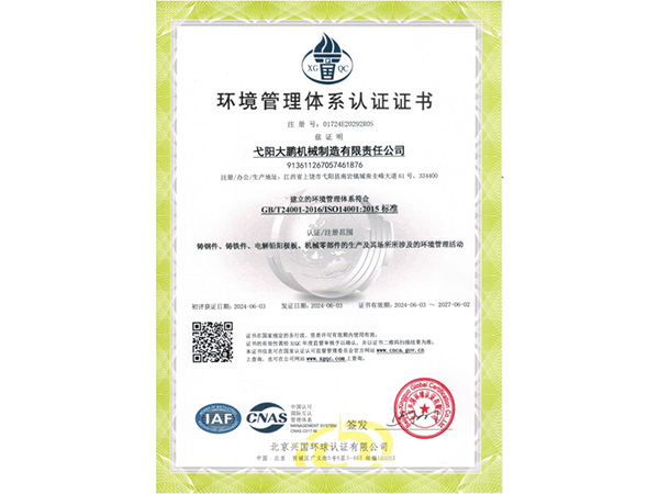 公司順利通過(guò)質(zhì)量管理體系認(rèn)證、環(huán)境體系認(rèn)證、職業(yè)健康安全管理體系認(rèn)證、環(huán)評(píng)。2015年5月獲國(guó)家工信委頒發(fā)的《鑄造企業(yè)準(zhǔn)入條件》;2019年做了安全現(xiàn)狀評(píng)價(jià);2020年取得了排污許可證。